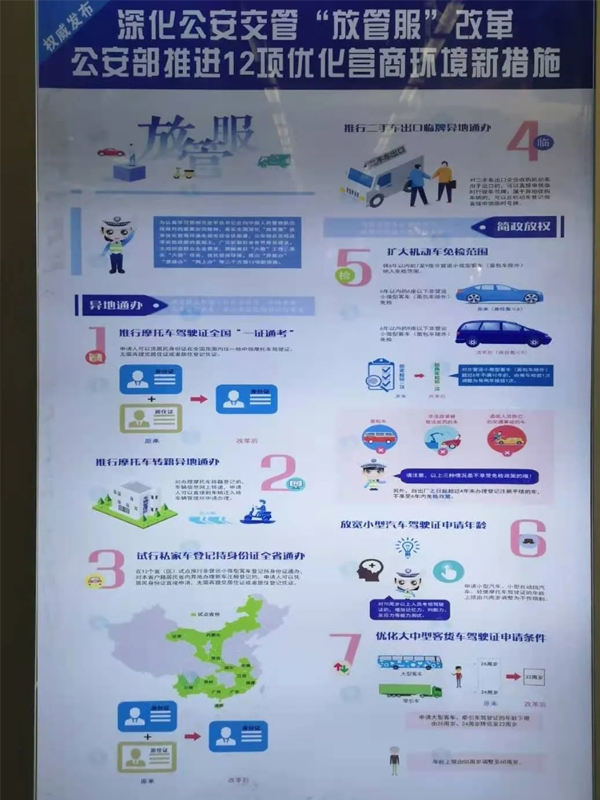 一是在推行“異地通辦”方面推出4項(xiàng)新措施,推行摩托車(chē)駕駛證全國(guó)“一證通考”,推行摩托車(chē)轉(zhuǎn)籍異地通辦,試行私家車(chē)登記持身份證全省通辦,推行二手車(chē)出口臨牌異地通辦,更好滿足群眾異地工作生活需要,更好降低企業(yè)辦事運(yùn)營(yíng)成本,更好適應(yīng)常態(tài)化疫情防控要求。