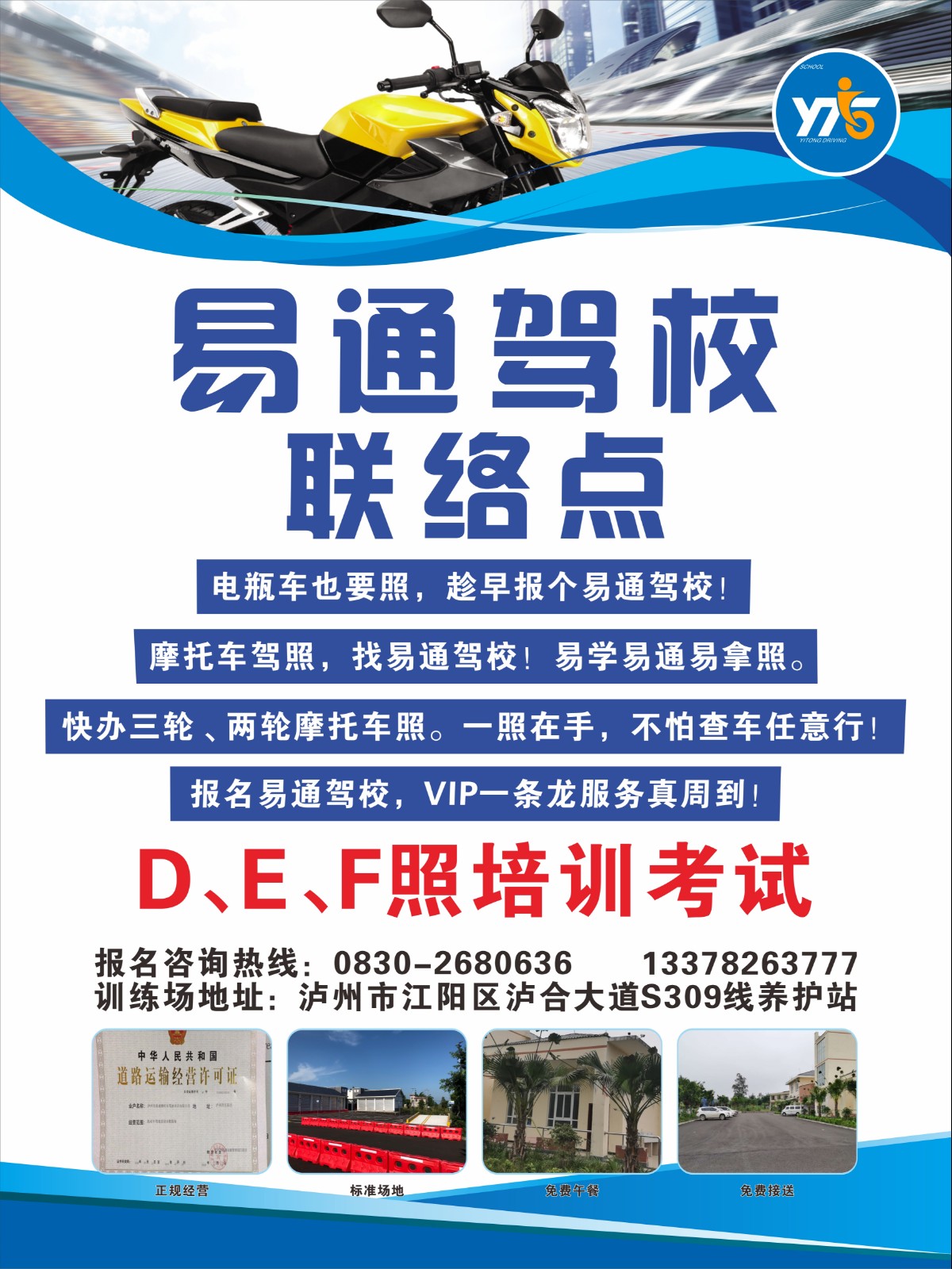 節(jié)假日接受學員報名和預約訓練,易通摩托車駕校,易學易通易拿照!